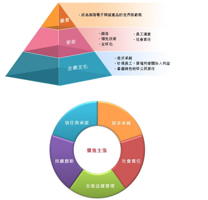 由於掌握關鍵性材料的技術利基,信昌電陶可配合市場需求,由材料研發著手,向下整合開發客戶所需要的電子元件,縮短量產時效,並積極規劃各項產品朝高附加價值的零件功能領域邁進,如:中高壓、高精度、大尺寸之晶片電容器及高功率、高精度與低阻值之晶片電阻器等高附加價值產品。未來更將結合材料核心技術,進軍高頻及高容領域。